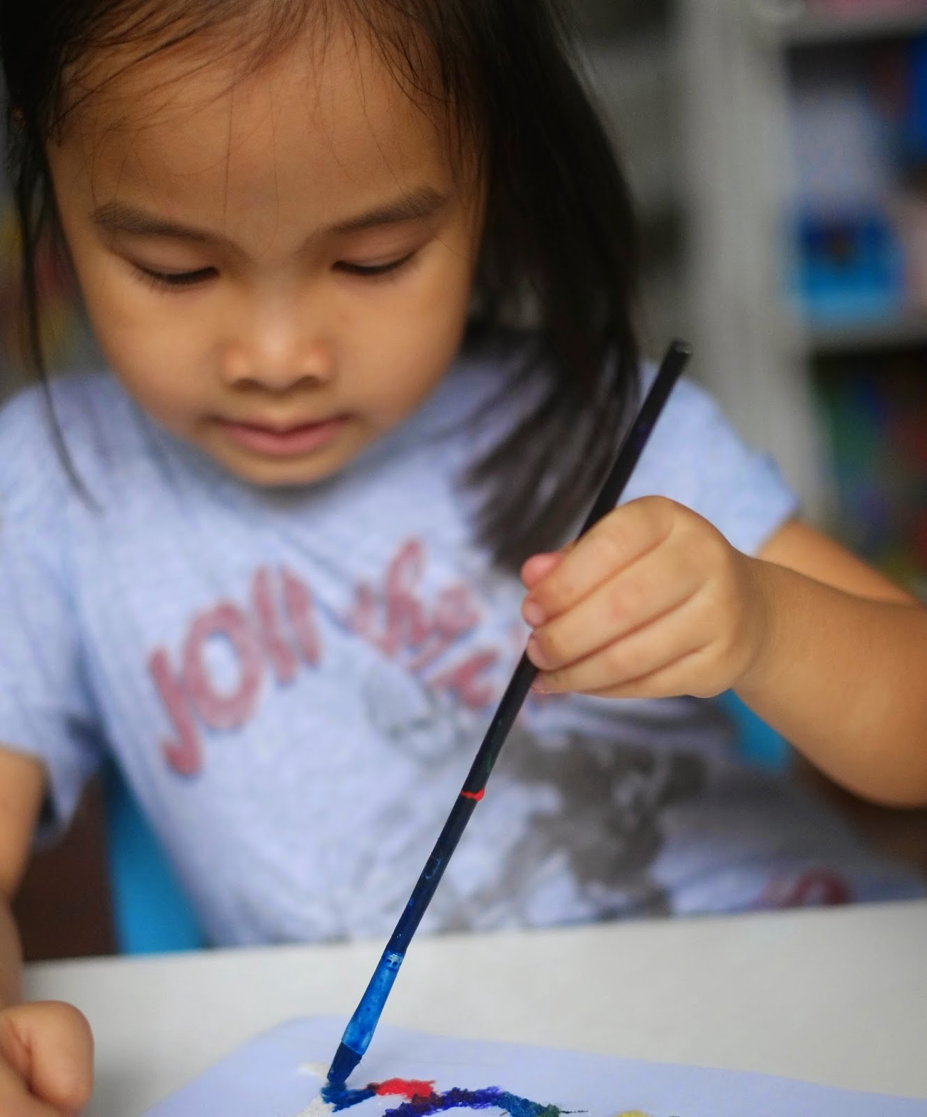 But this goes fast. I ended up having the kids make their own paint on-the-spot: